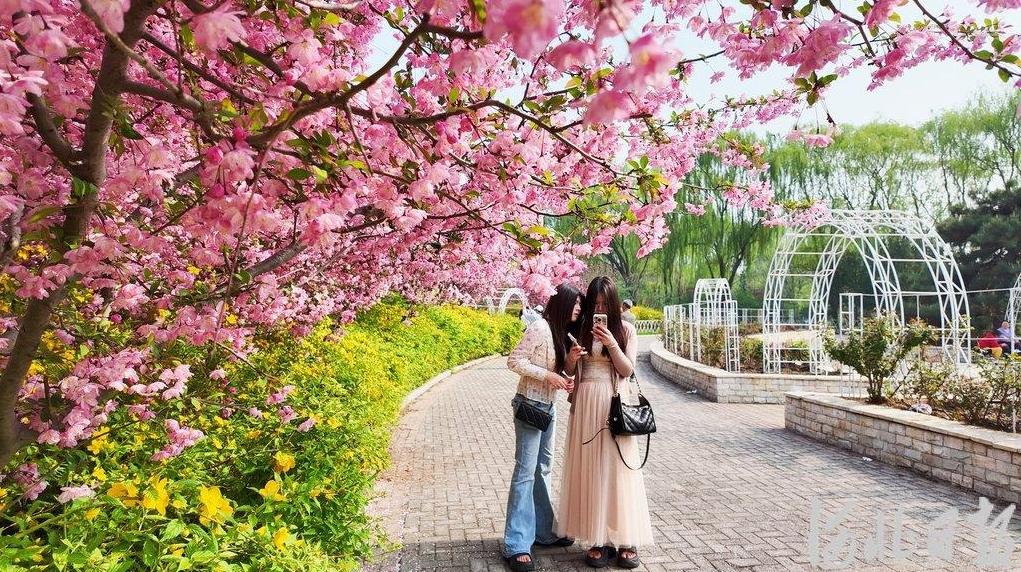 唐山:大钊公园海棠盛放,市民打卡春日美景