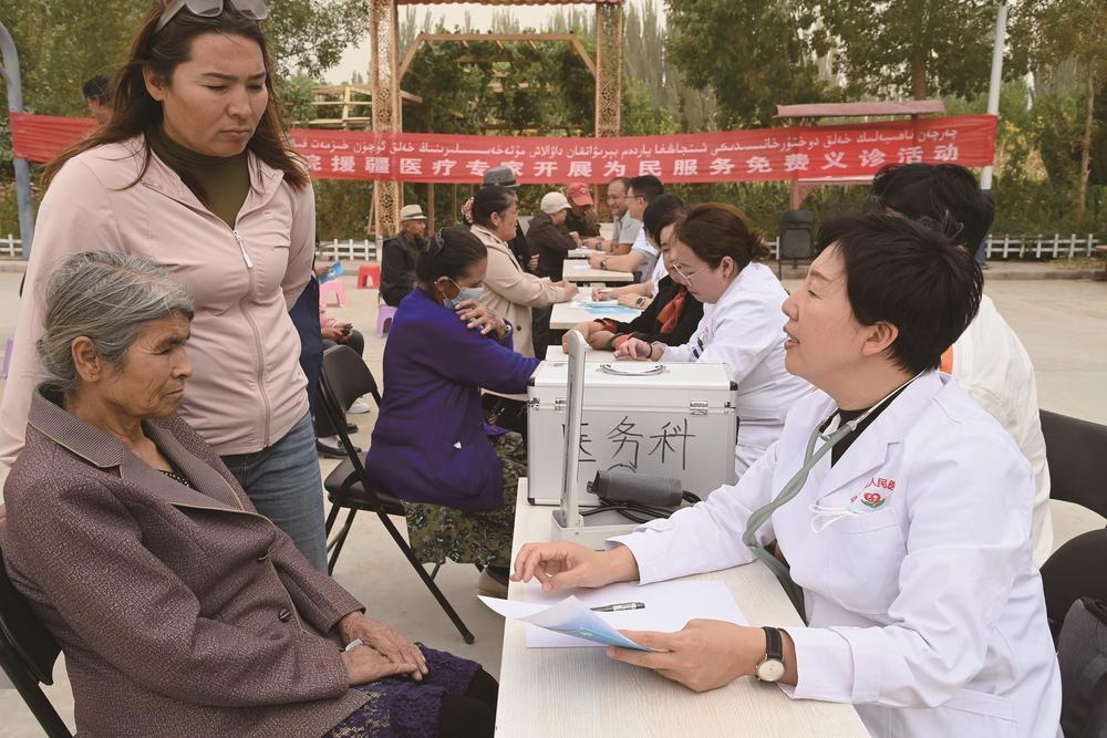 援疆医生深入边远乡镇义诊,受到了乡亲们的欢迎。