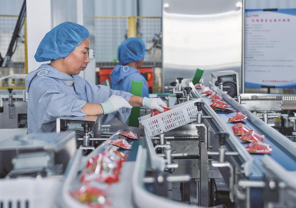图为板栗加工生产场面。