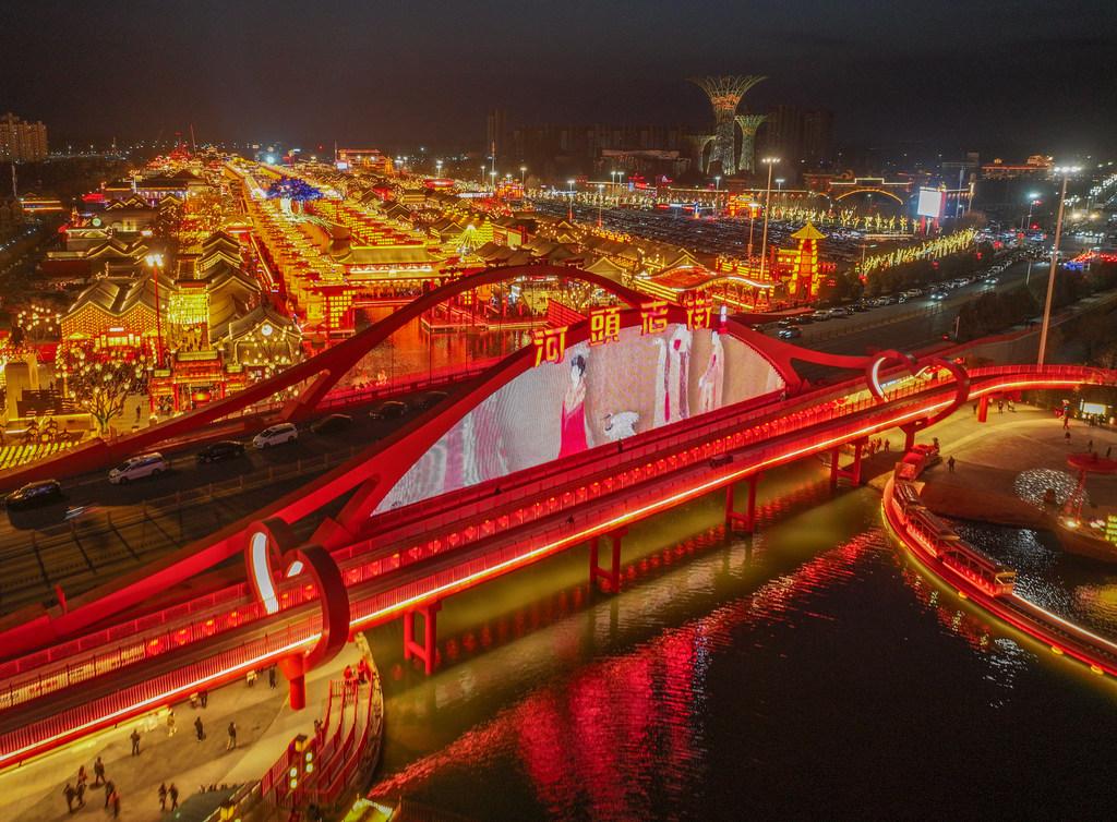 2月17日,唐山河头老街景区灯光璀璨。