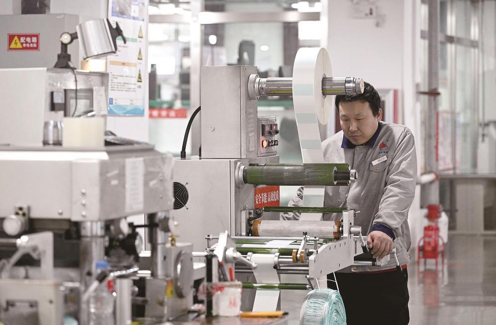 图为工人在自动化标签生产车间作业。记者 吕光宇 摄